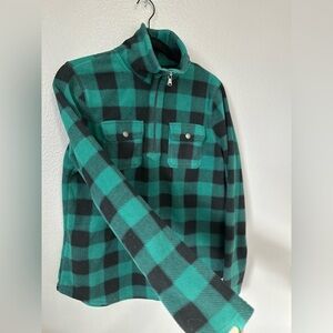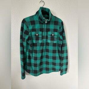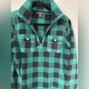 Chaps Women’s Green/Black Buffalo Plaid Fleece Quarter Zip-up. Size: Medium.