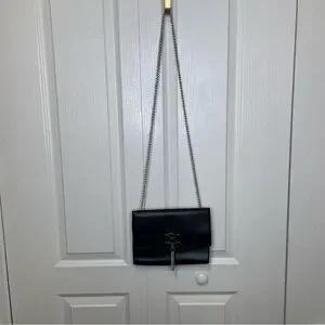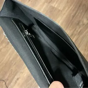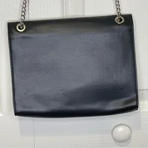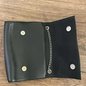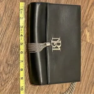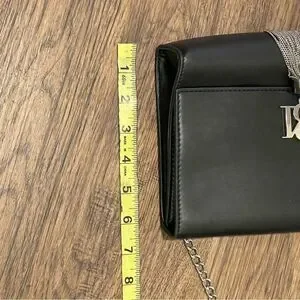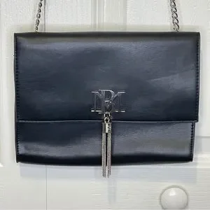 Badgley Mischka Metal Fringe Purse Black With Long Silver Chain