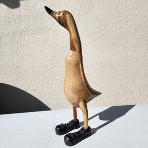 Vintage Duck in Lace-up Black Shoes Boots Home Decor Carved Wooden Wood - SUPER