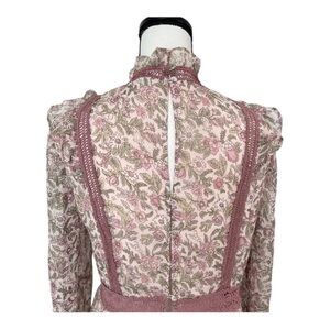 TOPSHOP Floral Ruffle Pink Long Sleeve High Neck Crochet Tea Dress