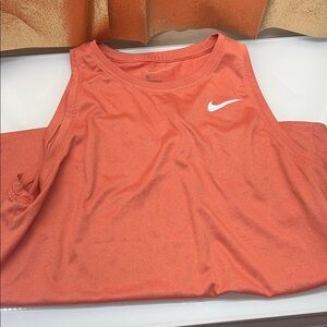 Top sleeveless tee with iconic white Nike swoosh. Ideal for active wear.