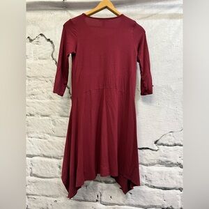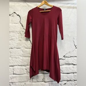 Eileen Fisher Asymmetrical Hem 3/4 Sleeve Passion Flower Scoop-Neck Jersey Dress