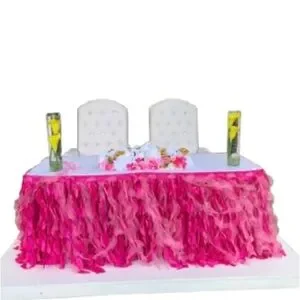 Add a touch of elegance to your event with this vibrant pink ruffled table skirt. Perfect for weddings, birthdays, and celebrations. It’s a table skirt. Velcro around the perimeter. Only used once.