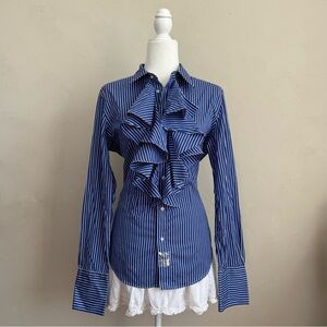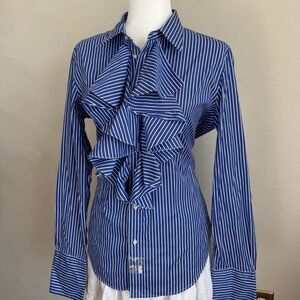 Chic Ralph Lauren Blue Striped Button Down Shirt Preppy NWT 100% Cotton