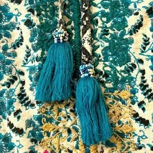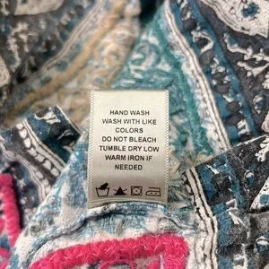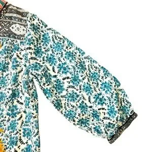 John Mark Boho Embroidered Floral 3/4 Sleeve Peasant Tunic Top Turquoise Small