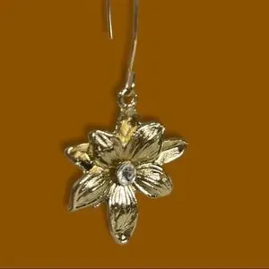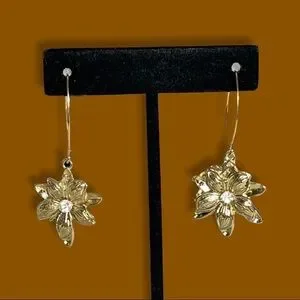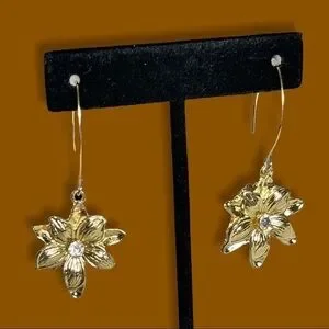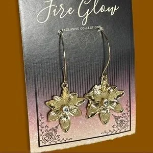 💍 Fire Glow Goldtone Dangle Earrings with Crystal Center