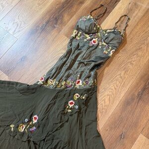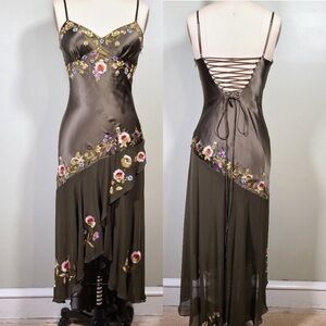 Vintage Y2K 100% Silk Embroidered Beaded Dress