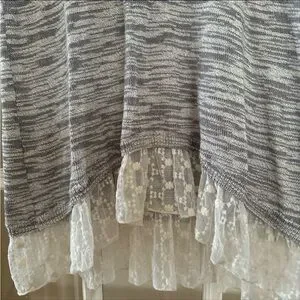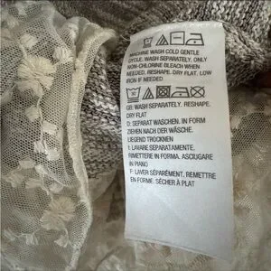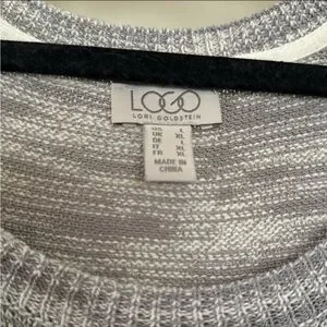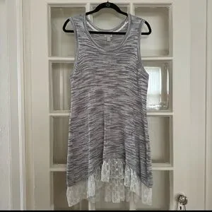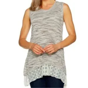 Lori Goldstein grey space dye sweater knit tank with a pretty mesh embroidery. Size large ! Good condition! Length 35” PTP 19” . If you’re in between M-L I’ll fit .