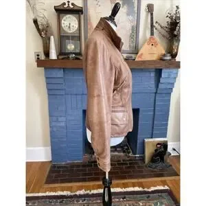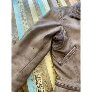 Y2K Vintage Moto Jacket Italian Leather Zip Brown SR Clothing Womens L READ