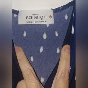 Chic navy jumpsuit with white spots. Features a flattering wrap design and wide legs. Ideal for versatile styling.