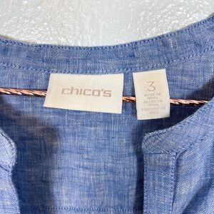 Chico's 100% Linen V-Neck Tunic Blouse