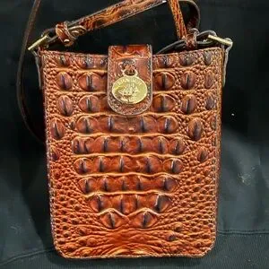 Chic Brahmin crossbody with croc-embossed texture. Secure flap with gold-tone accent. Perfect for everyday use.