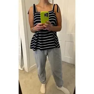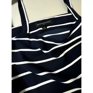 Nautical Banana Republic Medium Tie Strap Silky Tank Top Navy White Stripe.