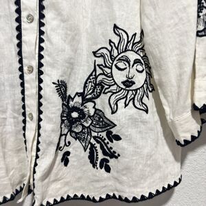 Johnny Was Addison Kimono Sleeve Shirt Floral Embroidery Large Embroidered Sun