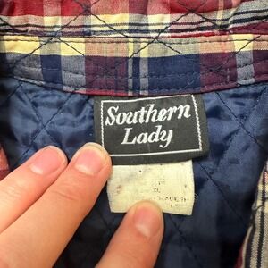 Southern Lady XL Vest Plaid Sleeveless Quilted Red Green Blue Button Up