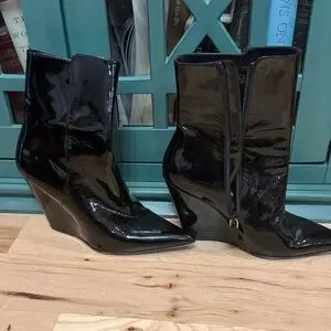 Stuart Weitzman Stuart 100 Black Patent Leather Wedge Boots