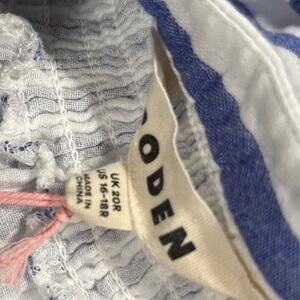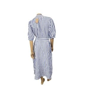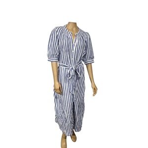 Boden Blue White Stripe Button Front Midi Dress Belted Puff Sleeve Resort
