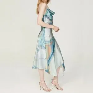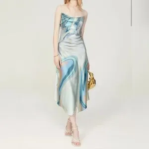 JONATHAN SIMKHAI Women's Watercolor Sleeveless Cowl-Neck Nellie Slip Dress, Size 10