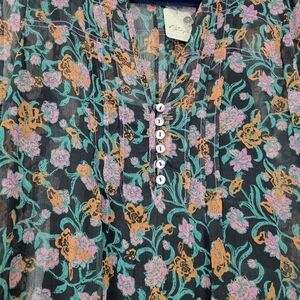 NWT Free People See It Through Floral Pleated Boho Maxi Dress Size Small