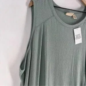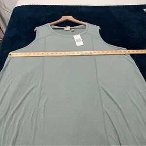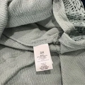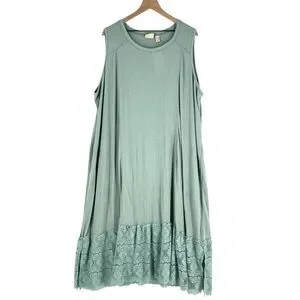 LOGO Linens Lori Goldstein Sleeveless Aqua Teal Midi Dress Lace Hem Flowy 3X
