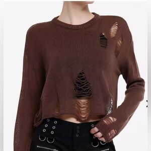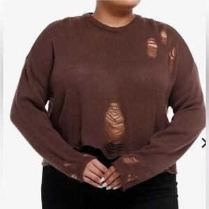 Social Collision/Hot Topic Distressed Crop Sweater Brown-JR Size 1/XS NWOT