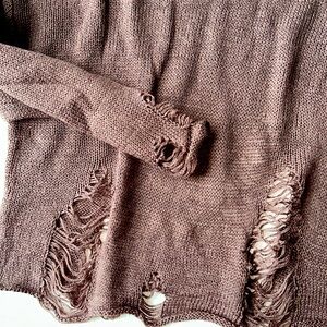 Stay stylish and comfortable with this distressed brown sweater. Perfect for casual outings.