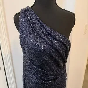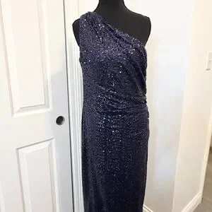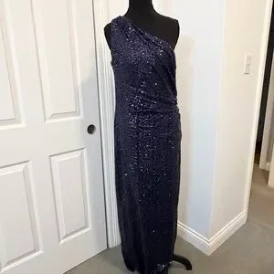 Lauren Ralph Lauren Evening - Navy Sequin One Shoulder Full Length Gown Size 14