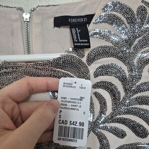 Tags: forever 21, sequin dress, mini dress, silver sequins, swirl pattern, party dress, cocktail attire, holiday dress, short sleeve dress, taupe dress, gunmetal, shimmering dress, glitter dress, nye outfit, size small, evening wear
