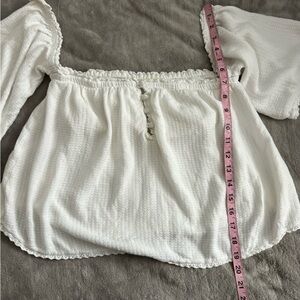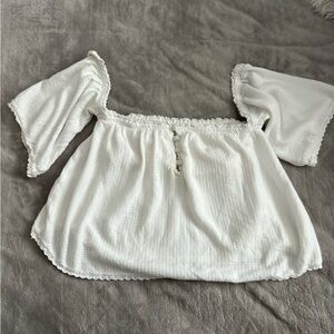 O'Neill White Smocked Short Sleeve Blouse