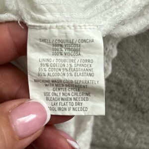 Size small, please see my pictures for measurements and material tag, please note that the arm and the trim top part is very stretchy, makes it very comfortable and easy to wear