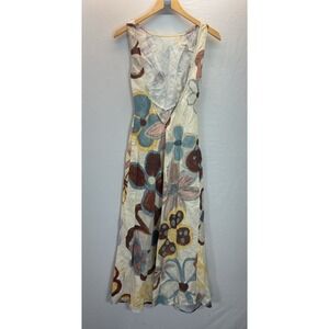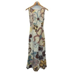 VRG GRL Floral Linen Maxi Dress SZ 8 Open Back Beach Vacation tropical