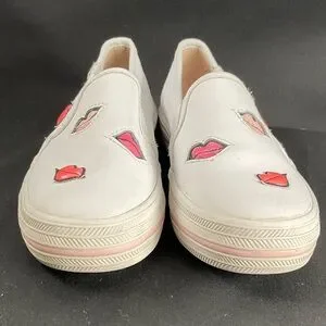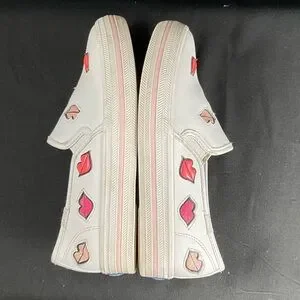 Keds Kate Spade Kids White Slip-On Sneakers Top Deckers with Red and Pink Lips