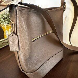 Refined pebble leather Inside zip and multifunction pockets Zip-top closure fabric lining Outside zip pocket Adjustable strap with 21 drop for shoulder or crossbody wear 9 (L) x 10 1/2 (H) x 5 3/4 (W) Style No. CBH18