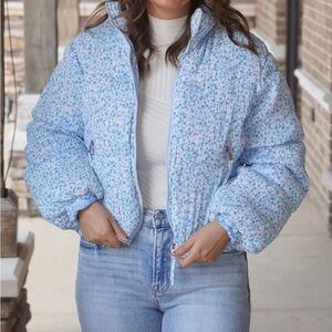 TCEC Light Blue Floral Puffer Jacket
