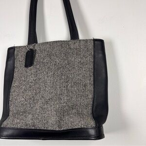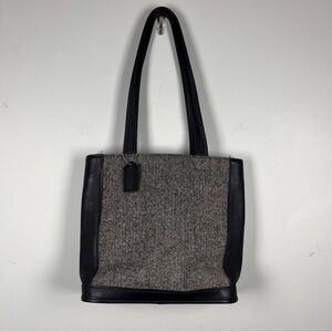 Coach Y2K Bleecker Satchel Gray Wool Leather Bag Herringbone Purse Academia