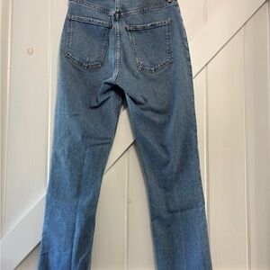 Stylish straight leg jeans. Comfortable fit. Perfect for everyday wear. High quality jeans in medium wash. Distressed look on the cuffs. Please see pictures for details.