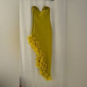 Fashion Nova Jacqueline Chartreuse Strapless Feather High Slit Dress NWT Size XS