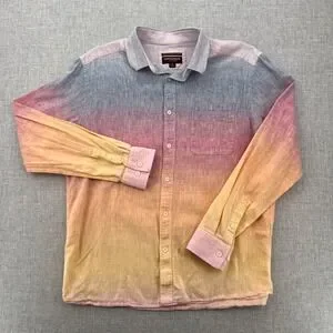 Johnston Murphy Linen Blend Ombre Shirt Men Medium Colorful Button Up Resort
