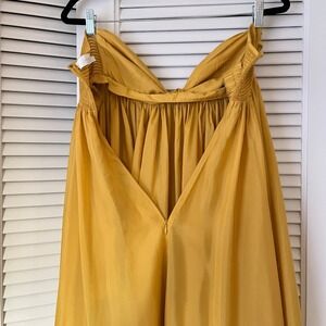 Zimmermann Devi Silk Halter Hi-Low Maxi Dress in Mustard Yellow AU 1 US 4-6 FLAW