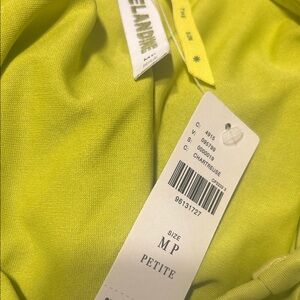 Strapless stretchy dress. Soft. Chartreuse color. Perfect to dress up or down. Never worn. Shelf bra. Flattering asymmetrical ruching.