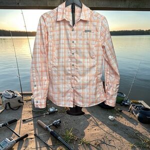 Field & Stream Peach/Wht Plaid Button-Up Long Sleeve Cool Sporting Shirt Women L