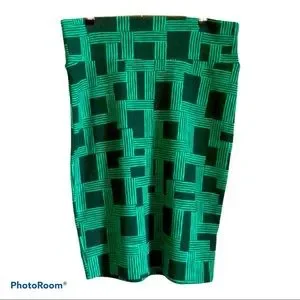This fabulous pencil skirt by LuLaRoe features two tones of green in a basket weave pattern.