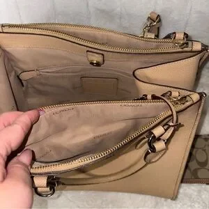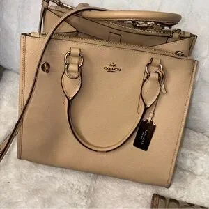 Coach Beige Leather Tote Bag Coach Linud crossbody tote