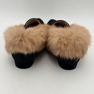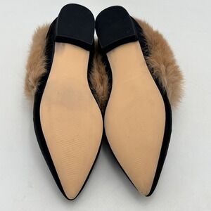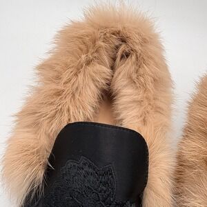 Divanne Black Embroidered Mules Rabbit Fur Trim Pointed Toe Sz 8 Hollywood Glam