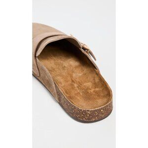 Features: Beautiful leather slides featuring a gold-tone logo buckle strap and a molded cork footbed lined in leather for that luxe feel. Round toe offers a comfy, classic look. Rubber sole provides good grip, making these great for casual or dressier occasions.
