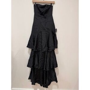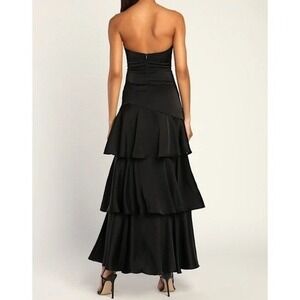 Lulus Black Strapless Tiered Ruffle Maxi Dress XS Evening Formal