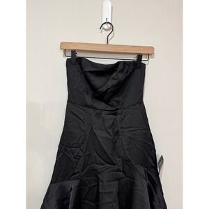 Keywords: strapless dress, evening gown, formal wear, tiered dress, ruffle dress, black maxi, special occasion, cocktail dress, party dress, elegant, sophisticated, wedding guest, prom