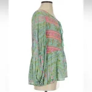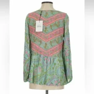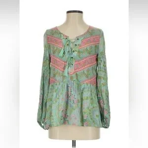NWT Spell City Lights Green and Pink Paisley Lace-Up Blouse