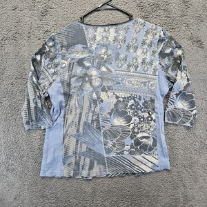 Vanilla Sugar Top Women 1x Floral Blue 3/4 Sleeve Western