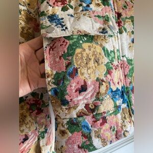 NWT Avec Les Filles Floral Tapestry Cropped Bomber Jacket with Patch Pockets XS